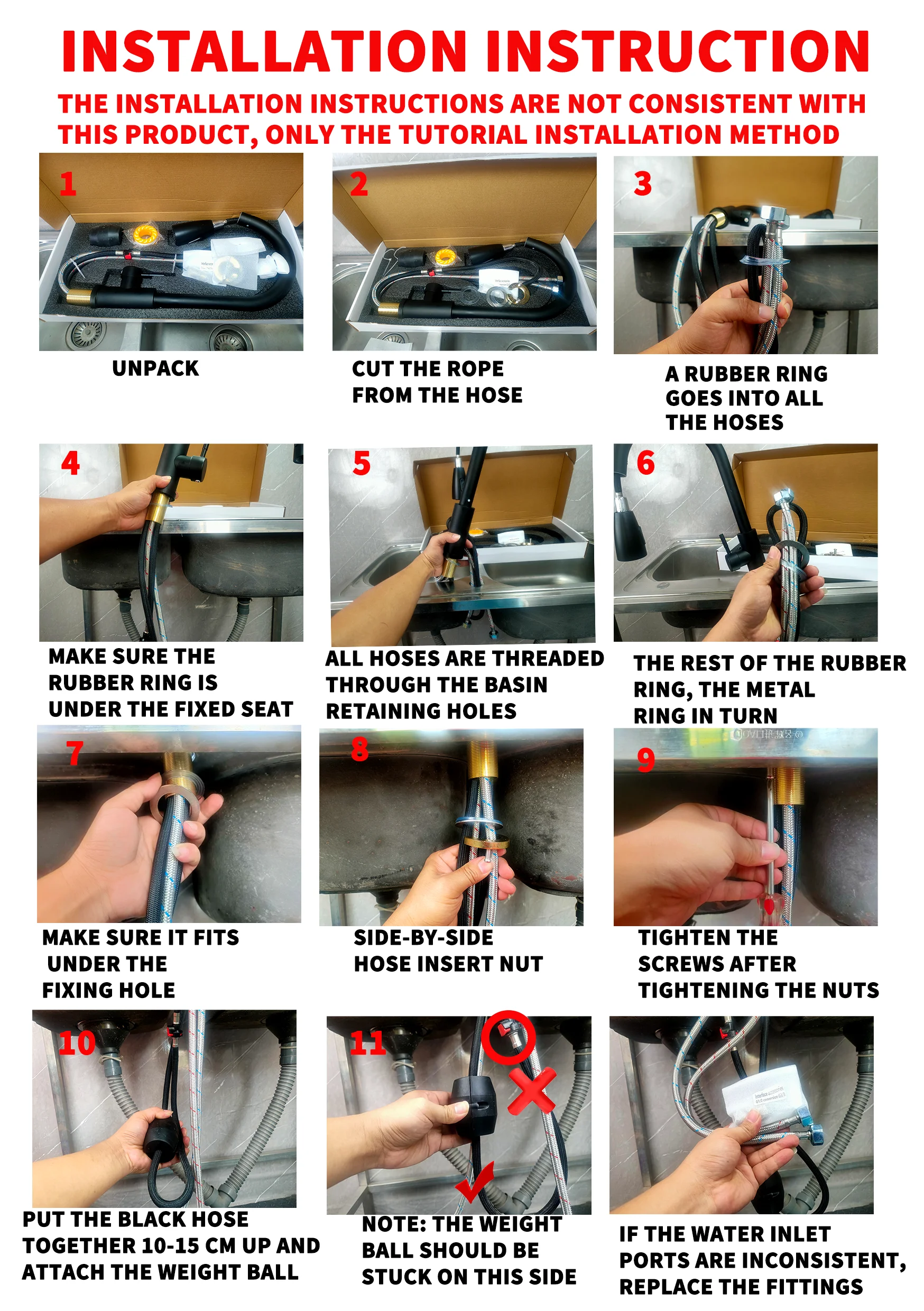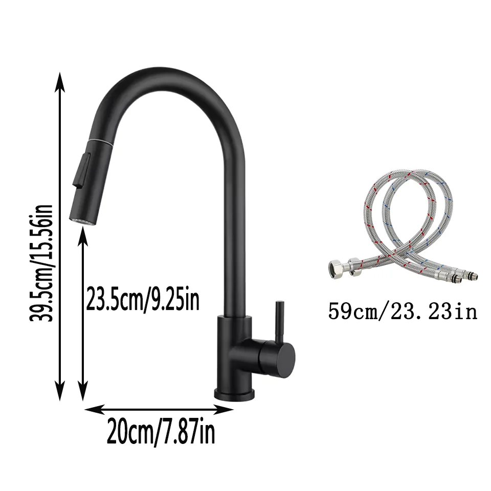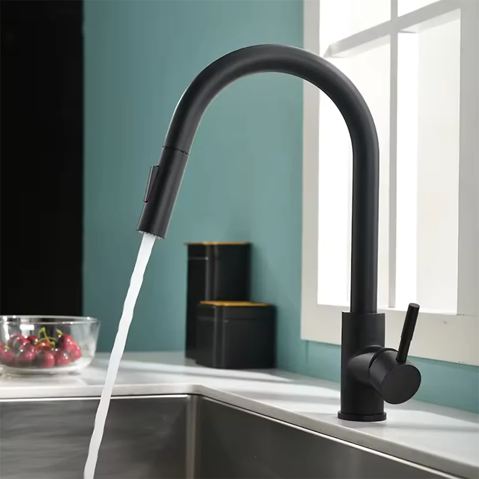 - Black Kitchen Faucet Flexible Pull-out 2-mode Nozzle Cold and Hot Mixed Faucet Stainless Steel Faucet