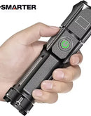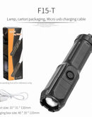 - Telescopic Zoom Tactical Flashlights Rechargeable LED Torch 4 Lighting Modes Long-Range Waterproof Camping Fishing Flashlight