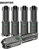 Telescopic Zoom Tactical Flashlights Rechargeable LED Torch 4 Lighting Modes Long-Range Waterproof Camping Fishing Flashlight